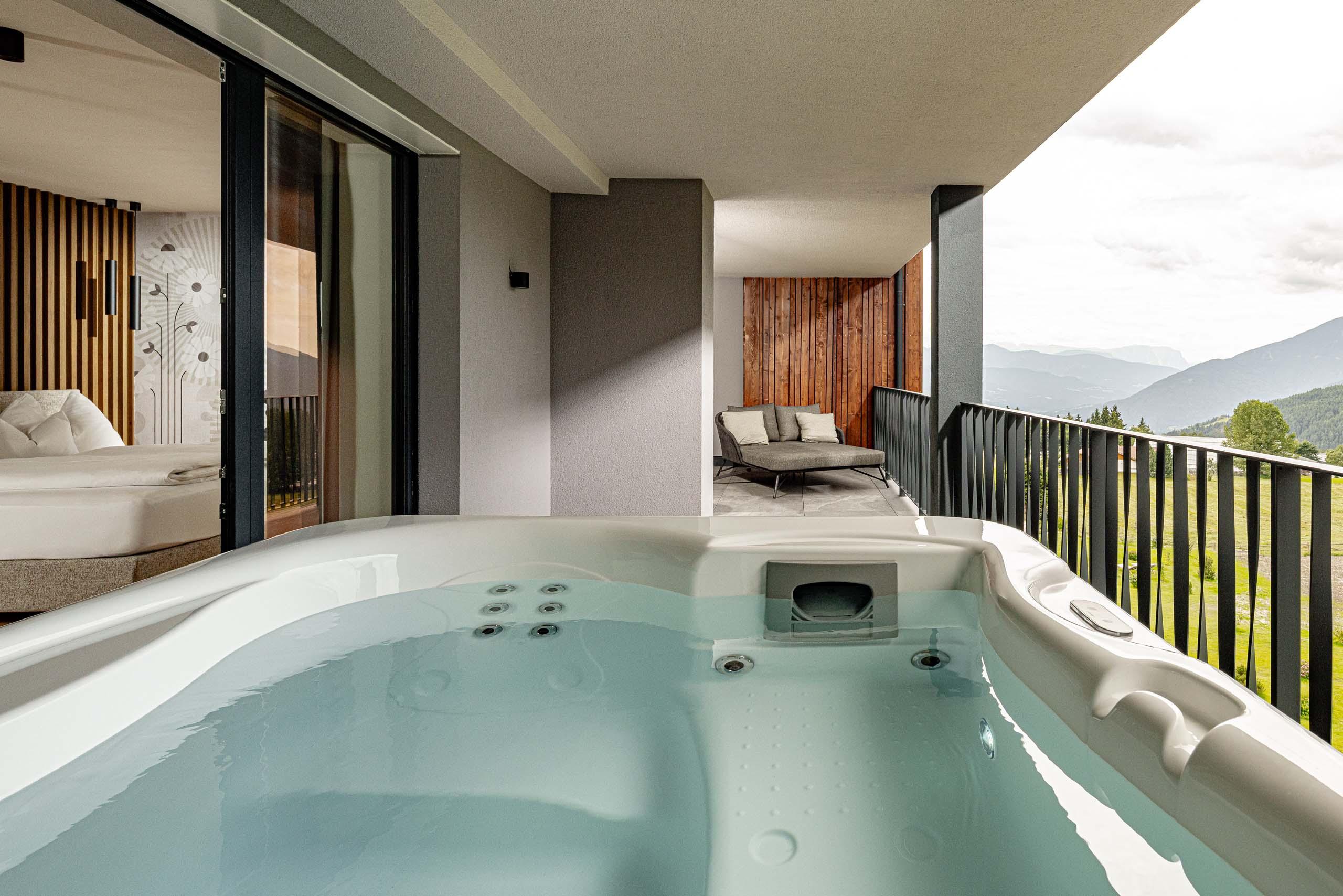 Die Spa Suite ist Ihre perfekte Private Spa Experience. Auf dem großzügigen Balkon erwartet Sie Ihr privater Whirlpool, der pure Entspannung und einen unvergleichlichen Blick in die Weite bietet. Ein einzigartiger Rückzugsort für besondere Momente voller Luxus und Ruhe.